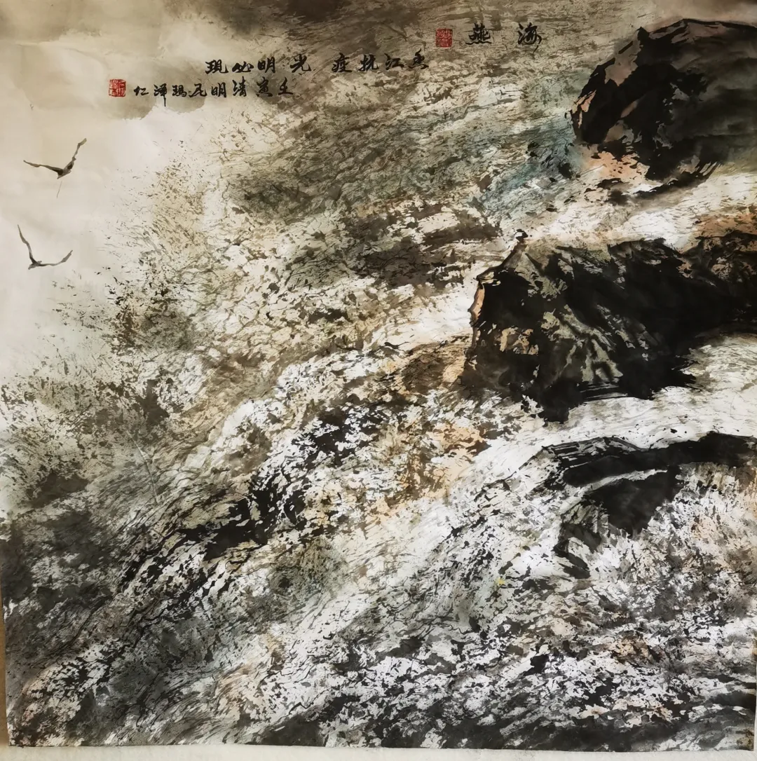 尼瑪澤仁 海燕 水墨畫 68cm×68cm