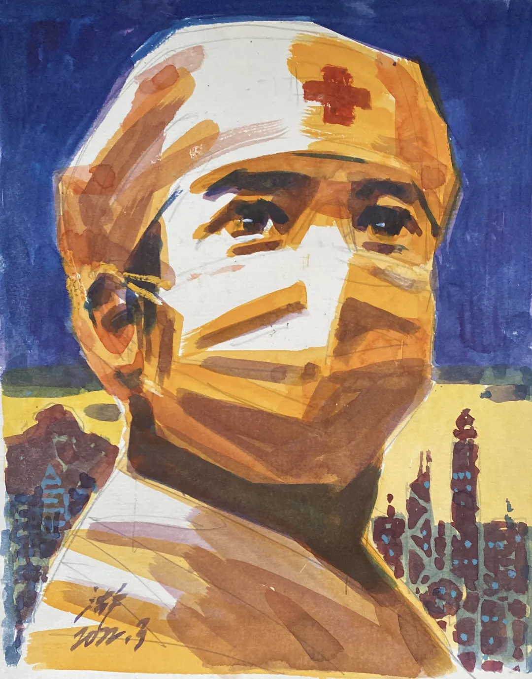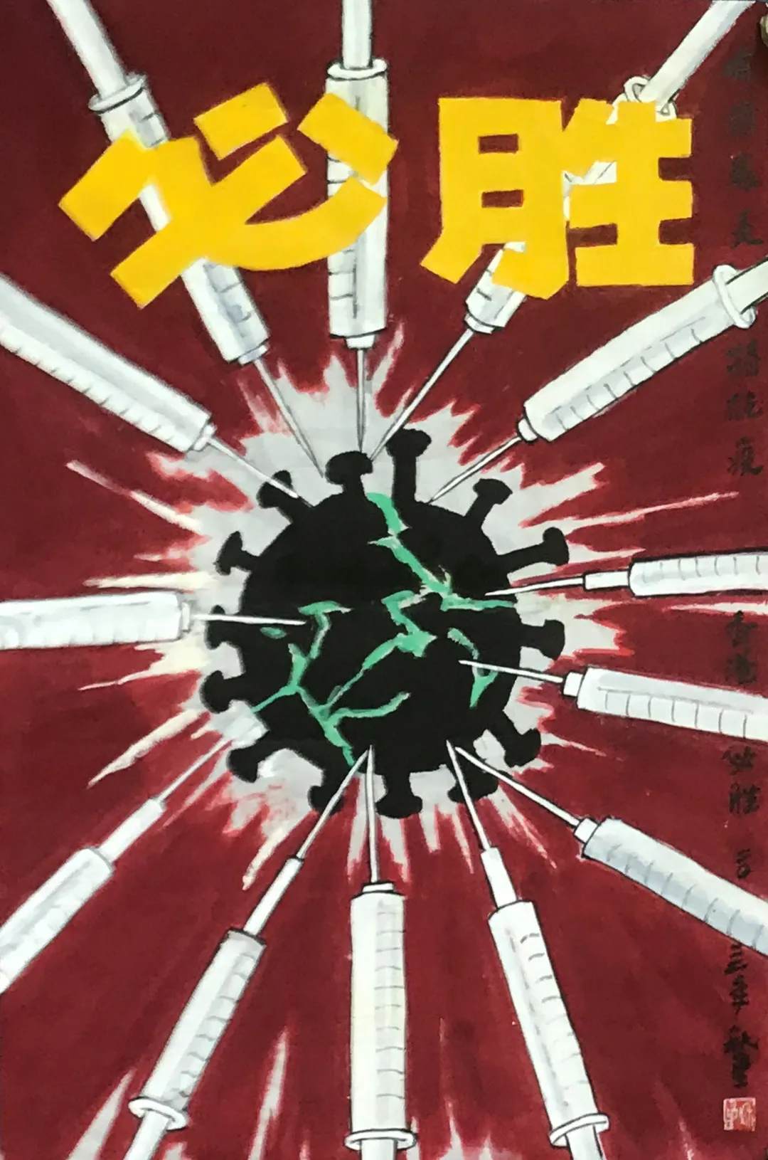 王秋童 共克時艱 水墨畫 65cm×45cm