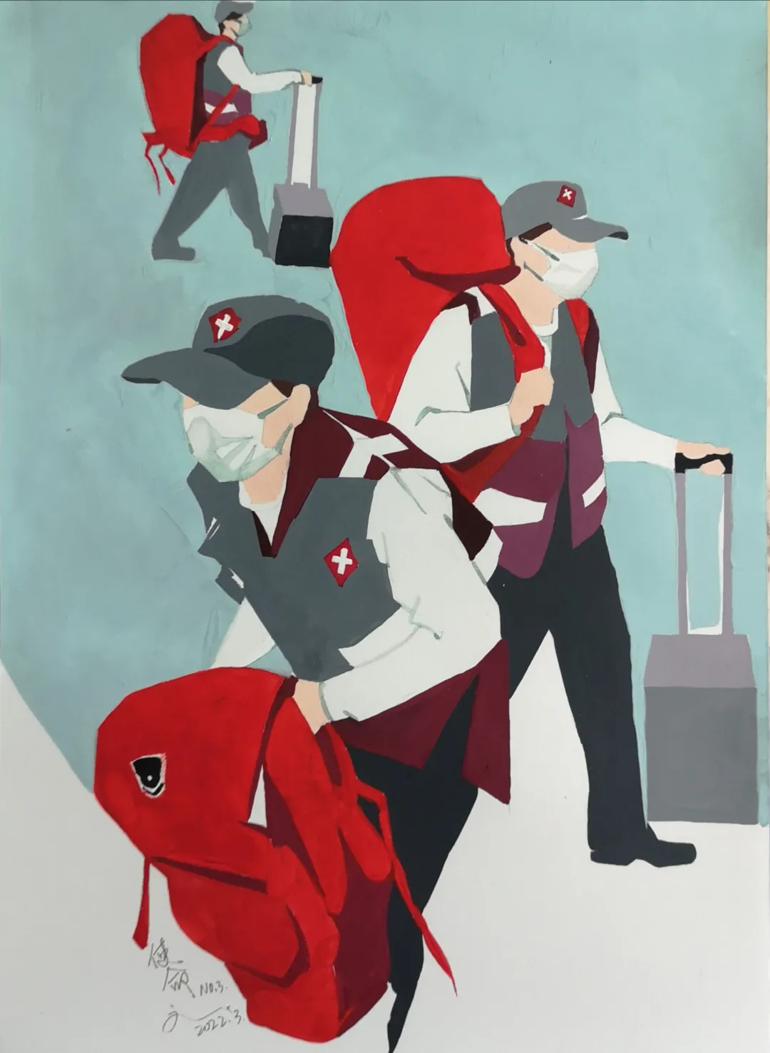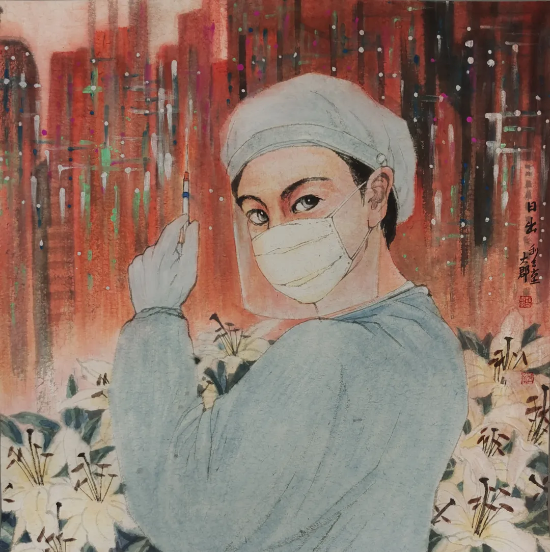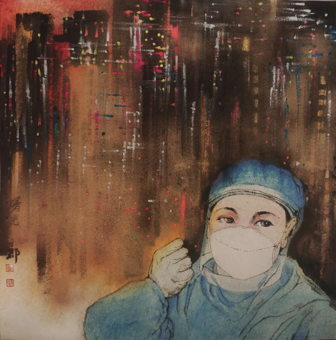 我的參展作品是描繪祖國的山川,將抗擊疫情的英雄們視為人民的大山,一座座敢於擔當勇於奉獻的大山。疫情來勢洶洶,而我筆下的山川流轉,水墨氣韻勢如長虹。猶如一方有難八方相助,全國人民上下一心。你真的會相信人類與生俱來的大愛情感是可以跨過山川,越過大海的。因為山川再高,大海再深,我們抬起頭來看到的是同一輪風月。